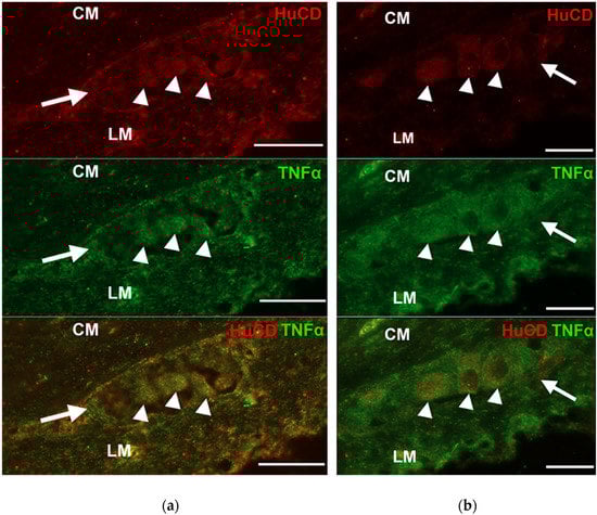 3.3. Subcellular Localization and Quantification of TNFα Expression in Myenteric Ganglia