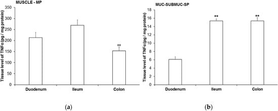 3.4. TNFα Levels in Different Intestinal Tissue Layers