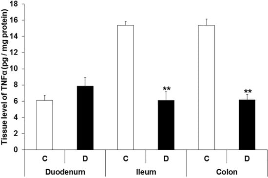 Intestinal Region-Specific and Layer-Dependent Induction of TNFα in Rats with Streptozotocin-Induced Diabetes and after Insulin Replacement