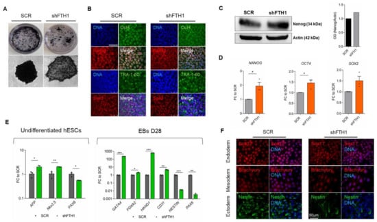 3.1. Effects of FTH1-Silencing on ESCs Pluripotency