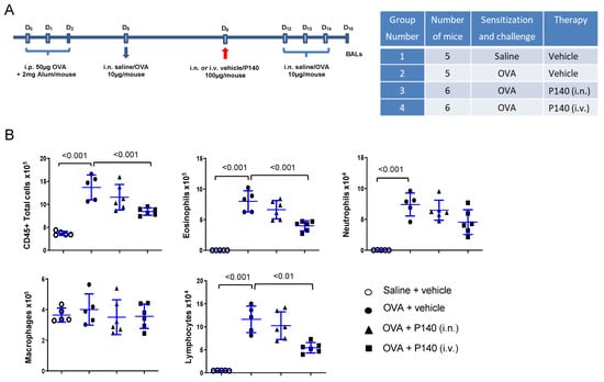 3.1. Effect of the Autophagy Regulator P140 in an Acute Model of OVA-Induced Eosinophilic Airway Inflammation