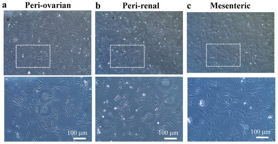 ASCs from the peri-ovarian, peri-renal, and mesenteric adipose tissue of rats were homogenous in cultures with typical fibroblast-like MSCs. These cells could be easily expanded in vitro without any special requirements under standard culture conditions, consistent with previous reports [].