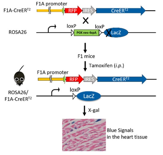 2.2. Crossing of F1A-CreERT2 and ROSA26 Mice for Tracing the Activity of F1A-Promoter by LacZ Staining Assay