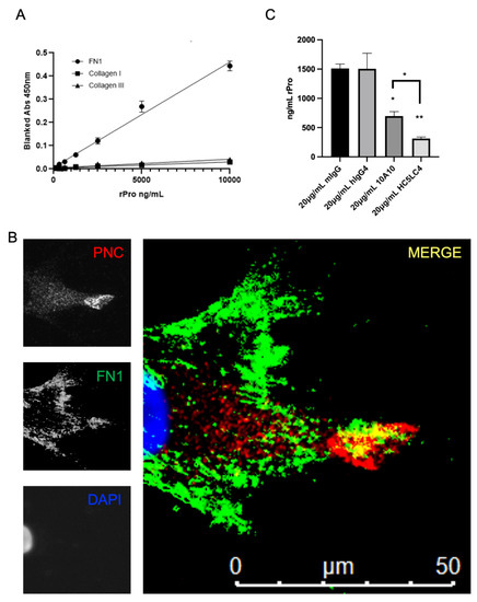 3.5. Migration of PNC-Expressing Myofibroblasts Is Inhibited by Recombinant Prodomain and Fully Humanized α-PNC Antibody