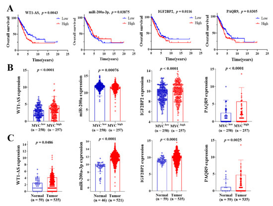 The following are available online at https://www.mdpi.com/article/10.3390/cells11010025/s1, Table S1. IHC of c-Myc in Human Protein Atlas database; Table S2. Univariate analysis of overall survival in LUAD patients stratified based on clinical characteristics; Table S3. Univariate and multivariate analysis (Cox regression model) of WT1-AS and IGF2BP2 in LUAD patients; Table S4. Correlation analysis between IGF2BP2 and biomarkers of immune cells using TIMER; Figure S1. Expression distribution expression of c-Myc in various cancer tissues; Figure S2. Correlation analysis of differentially expressed RNAs in ceRNA network with overall survival of LUAD patients; Figure S3. The distribution of 15 RNAs expression value from the ceRNA network in the TCGA LUAD dataset; Figure S4. The distribution of 15 RNAs expression value in 57 (46) paired LUAD tissues; Figure S5. Correlation analysis of IGF2BP2 expression levels with immune infiltration in lung adenocarcinoma. (A) Correlation between IGF2BP2 gene copy numbers and the level of infiltration of six immune cells in LUAD. (B) Correlation between IGF2BP2 expression and the level of immune infiltration in LUAD. (C) Correlation analysis of immune infiltration and OS of LUAD. * p < 0.05; ** p < 0.01; *** p < 0.001. p < 0.05 was deemed as statistically significant.