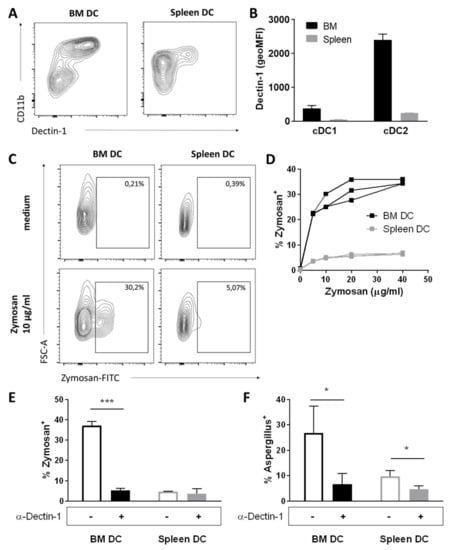3.4. BM DCs Express High Levels of Dectin-1, Which Mediate Uptake of Fungal Antigens