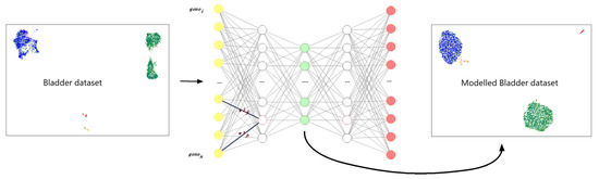 - Eraslan, G.; Simon, L.M.; Mircea, M.; Mueller, N.S.; Theis, F.J. Single-cell RNA-seq denoising using a deep count autoencoder. Nat. Commun. 2019, 10, 390. [Google Scholar] [CrossRef] [Green Version]