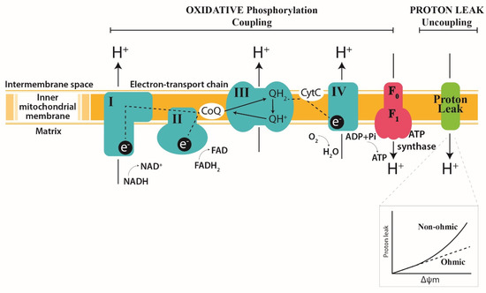 Originally described by Pietrobon et al. [44], alteration of the proton pumps expresses a change in the amount of protons stored in the intermembrane space (redox slipping) or the amount of protons returning to the matrix via ATP synthase (proton slipping), for the same amount of oxidized electrons.