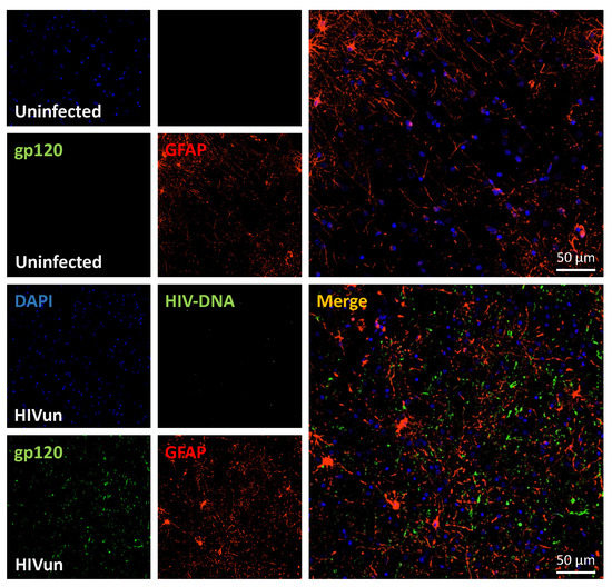 - Jones, M.V.; Bell, J.E.; Nath, A. Immunolocalization of HIV envelope gp120 in HIV encephalitis with dementia. AIDS 2000, 14, 2709–2713. [Google Scholar]