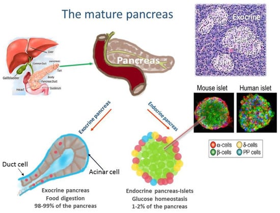- Meier, J.J.; Breuer, T.G.K.; Bonadonna, R.C.; Tannapfel, A.; Uhl, W.; Schmidt, W.E.; Schrader, H.; Menge, B.A. Pancreatic diabetes manifests when beta cell area declines by approximately 65% in humans. Diabetologia 2012, 55, 1346–1354. [Google Scholar] [CrossRef] [PubMed]