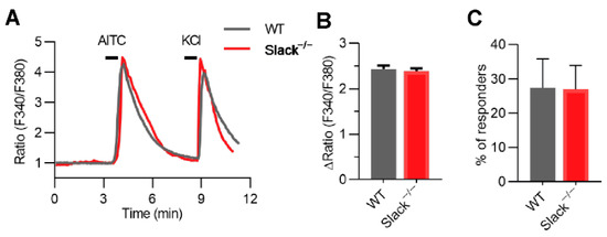 3.4. TRPA1-Dependent Calcium Transients in Sensory Neurons Are Unaltered in Slack−/− Mice