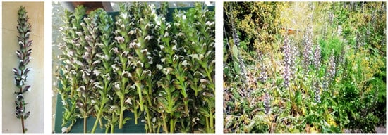 The anticancer and antimicrobial effects of natural extracts [,,,,,,,] are well documented. The biological activities of phytoextracts are mediated by a mix of molecules that singularly or in combination can damage cancer cells and pathogens, including viruses [,,]. The biological properties of the natural extracts are tightly correlated with the plants from which they are derived. One of these, the parasitic plant Orobanche crenata Forssk. (O. crenata), distinguishes itself for its interesting antimicrobial properties. O. crenata is a species belonging to the Orobanchaceae family, order Lamiales, found mainly in temperate regions of the Mediterranean basin and western Asia through to Iran []. It is an annual chlorophyll-free herbaceous parasitic of leguminous plants, with high-persistence seeds that are viable for over 10 years, which when stimulated by specific mediators of the leguminous root system, emit a rootlike structure (haustorium) and penetrate the host’s root to drain the lymph []. Its shoot consists of alternate leaves reduced to somewhat fleshy sessile scales, and a crenate earing that opens into a white-purple inflorescence []. The immature shoots are used to prepare dishes that are traditionally consumed in the rural communities of the Mediterranean basin [], whereas the flowering ones are also used in folk medicine due to their beneficial properties for human health [].