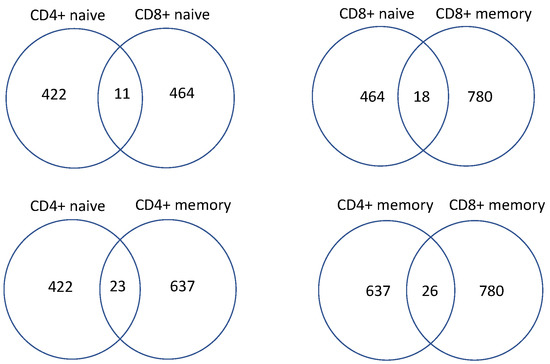 3.3. Study Genes Indicating the Purtabation in the Signal Transduction of Activated CD4+ and CD8+ T Cells Stimulated by Individual Cytokines Using RNA-Sequencing