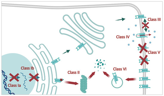 A reduction in the number of CFTR channels is also found in Class VI [51], albeit by a different mechanism. Here, the protein stability is reduced compared to WT, enhancing its turnover and leaving fewer channels at the PM. Several C-terminal truncations, such as Q1412X (c.4234C>T), destabilize CFTR without interfering with its biogenesis [52]. Temperature rescued F508del, where cells are cultured at 26 °C to promote ERQC escape, is another example of this class [53].