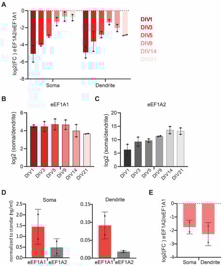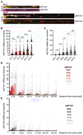 3.3. The Dendritic Concentration of eEF1A1 and eEF1A2 Increase over Neurodevelopment