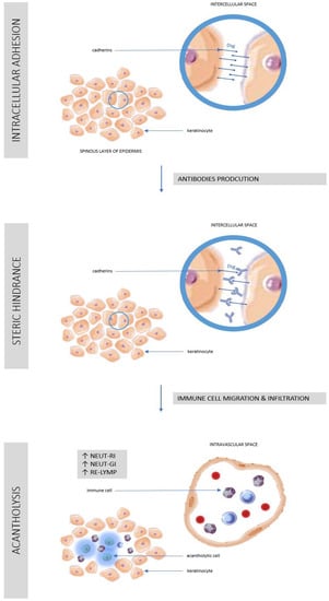- Furue, M.; Kadono, T. Pemphigus, a pathomechanism of acantholysis. Australas. J. Dermatol. 2017, 58, 171–173. [Google Scholar] [CrossRef]