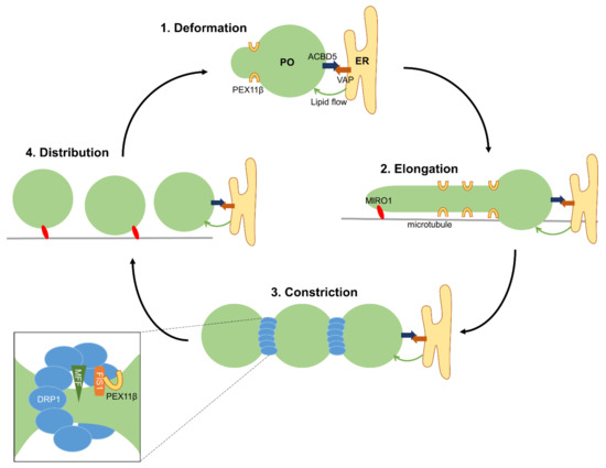- Imoto, Y.; Itoh, K.; Fujiki, Y. Molecular Basis of Mitochondrial and Peroxisomal Division Machineries. Int. J. Mol. Sci. 2020, 21, 5452. [Google Scholar] [CrossRef] [PubMed]