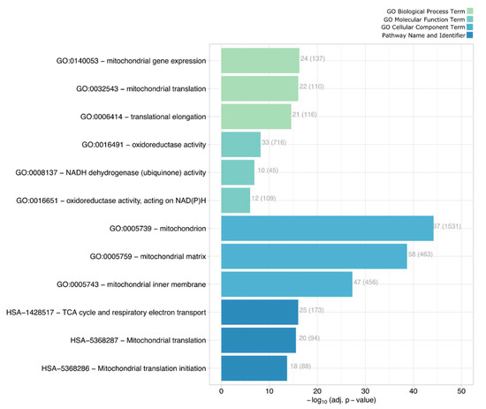 We found that the dataset of differentially localized proteins (Supplementary File S3) was highly enriched in mitochondrial components and redox functions, as summarized in Figure 4. The full set of results of network analysis of the translocators is reported in Supplementary File S4.