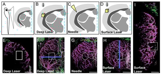 We created three types of injuries (see Materials and Methods) resulting in the defects shown in Figure 3, Figures S2 and S3.