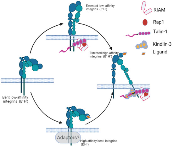 - Bromberger, T.; Zhu, L.; Klapproth, S.; Qin, J.; Moser, M. Rap1 and Membrane Lipids Cooperatively Recruit Talin to Trigger Integrin Activation. J. Cell Sci. 2019, 132, jcs235531. [Google Scholar] [CrossRef]