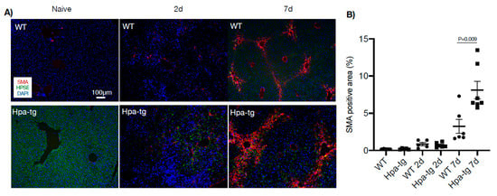 3.2. Higher Levels of Alpha-SMA in Hpa-Tg Liver