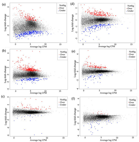 - Robinson, M.D.; McCarthy, D.J.; Smyth, G.K. edgeR: A Bioconductor package for differential expression analysis of digital gene expression data. Bioinformatics 2010, 26, 139–140. [Google Scholar] [CrossRef] [Green Version]