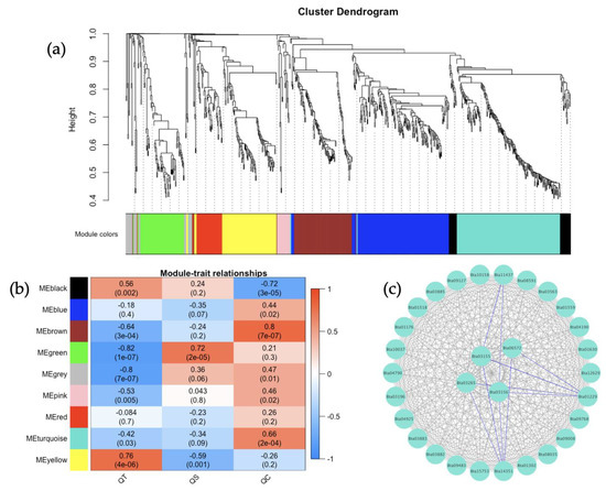 - Langfelder, P.; Horvath, S. WGCNA: An R package for weighted correlation network analysis. BMC Bioinform. 2008, 9, 559. [Google Scholar] [CrossRef] [Green Version]