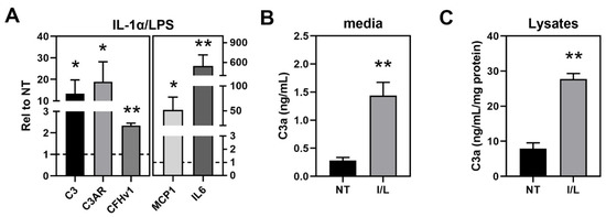 3.3. Investigation of Complement Pathway and Inflammasome Markers in haRPE Cells