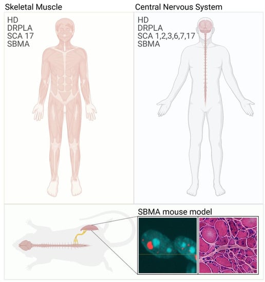 Chicago/Turabian StyleMarchioretti, Caterina, Emanuela Zuccaro, Udai Bhan Pandey, Jessica Rosati, Manuela Basso, and Maria Pennuto. 2022. "Skeletal Muscle Pathogenesis in Polyglutamine Diseases" Cells 11, no. 13: 2105. https://doi.org/10.3390/cells11132105