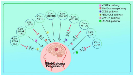 5.1. CircRNAs Responsible for the Up-Regulation of Glioblastoma