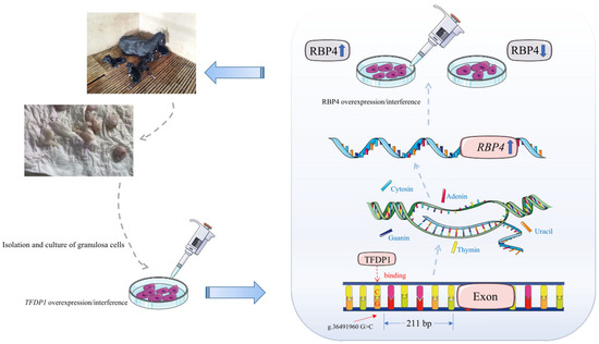 Flow chart of the RBP4 g.36491960G>C mutation regulating the proliferation of goat granulosa cells by the transcription factor TFDP1.