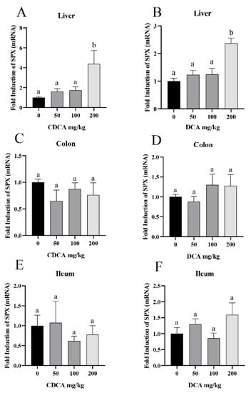 3.2. CDCA- and DCA-Induced SPX Expression in Mouse Liver