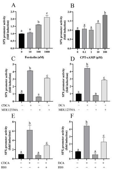 3.4. The Role of AC/cAMP/PKA Pathway in CDCA- and DCA-Induced SPX Promoter Activity