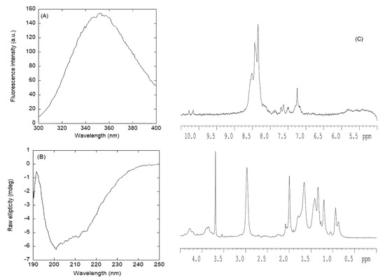 - Whitmore, L.; Wallace, B.A. DICHROWEB an online server for protein secondary structure analyses from circular dichroism spectroscopic data. Nucleic Acids Res. 2004, 32, W668–W673. [Google Scholar] [CrossRef] [PubMed]