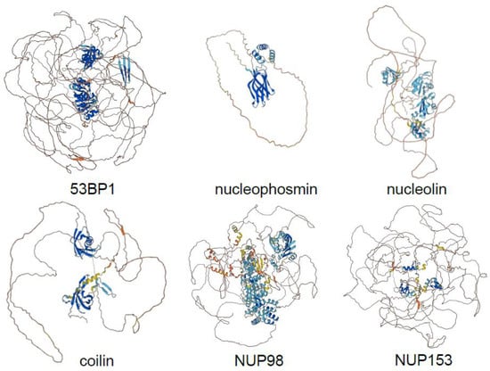 AlphaFold-predicted structures of exemplary IDPs and prominent MLO components that are CDK substrates (https://alphafold.ebi.ac.uk/) (accessed on 1 June 2022).