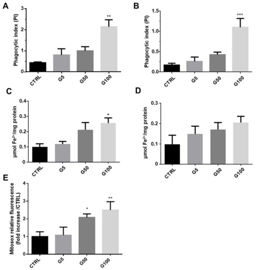 Bicinchoninic acid (BCA), D-glucose, Drabkin’s reagent, ferrous sulfate (FeSO4), fluorescein isothiocyanate-dextran (FITCDextran), formic acid, mannitol and PKH67 (green fluorescent cell linker) were all purchased from Sigma-Aldrich (St. Louis, MO, USA). Fetal bovine serum (FBS), L-glutamine, penicillin/streptomycin, amphotericin B and HAT (hypoxanthine/aminopterin/thymidine) were obtained from Pan Biotech (Aidenbach, Germany). 3-(2-Pyridyl)-5,6-diphenyl-1,2,4-triazine-4′,4′′-disulfonic acid sodium salt (ferrozine) and 2,9-Dimethyl-1,10-phenanthroline(neocuproine) were purchased from Alfa Aesar (Kandel, Germany). MitoSOX Red mitochondrial superoxide indicator and pHrodo Red were purchased from Thermo Fisher (Carlsbad, CA, USA).