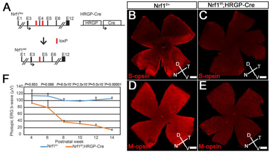 3.1. Progressive Degeneration in Nrf1-Deficient Cone Photoreceptors