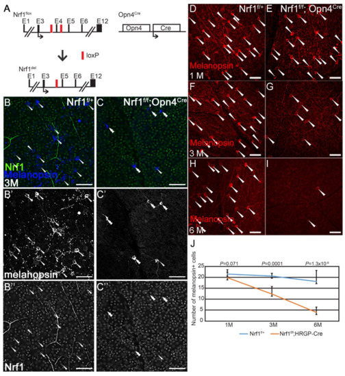 3.2. Slow and Progressive Reduction of Nrf1-Depleted ipRGC