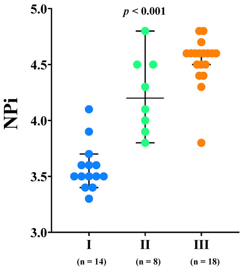 Neurological Pupil Index (NPi) values according to the different combination estimated cerebral perfusion pressure (eCPP) and estimated intracranial pressure (eICP): group I = low eCPP and high eICP; group II = low eCPP and normal eICP; group III = normal eCPP.