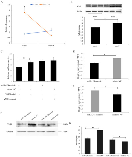 3.7. miR-124a Regulates Myoblast Autophagy by Targeting VMP1