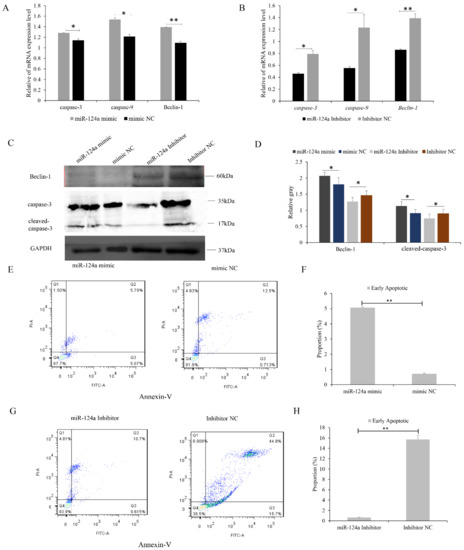 3.4. miR-124a Inhibits Proliferation of, and Induces Cell Apoptosis in, Goat Myoblasts