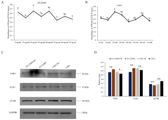 APA StyleLiu, Y., Zhou, Z., Li, K., Wang, P., Chen, Y., Deng, S., Li, W., Yu, K., & Wang, K. (2022). VMP1 Regulated by chi-miR-124a Effects Goat Myoblast Proliferation, Autophagy, and Apoptosis through the PI3K/ULK1/mTOR Signaling Pathway. Cells, 11(14), 2227. https://doi.org/10.3390/cells11142227