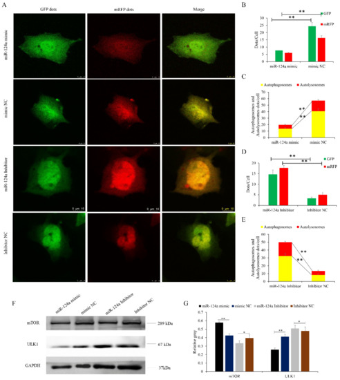 3.8. miR-124a Impedes the VMP1/ULK1/mTOR Pathway