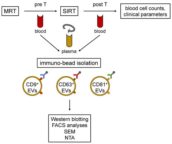Haag, F.; Manikkam, A.; Kraft, D.; Bär, C.; Wilke, V.; Nowak, A.J.; Bertrand, J.; Omari, J.; Pech, M.; Gylstorff, S.; et al. Selective Internal Radiotherapy Changes the Immune Profiles of Extracellular Vesicles and Their Immune Origin in Patients with Inoperable Cholangiocarcinoma. Cells 2022, 11, 2309. https://doi.org/10.3390/cells11152309