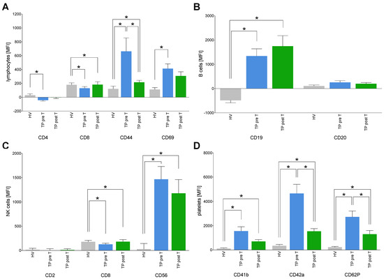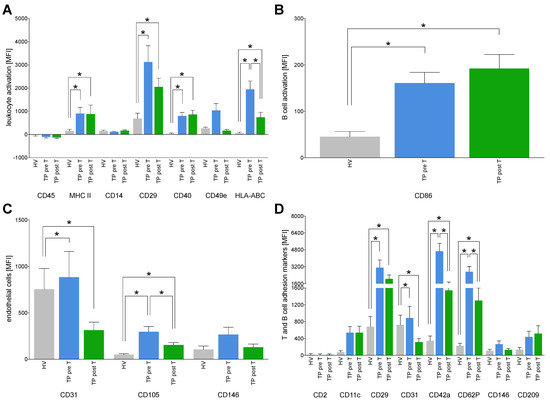 - Wolk, K.; Höflich, C.; Zuckermann-Becker, H.; Döcke, W.-D.; Volk, H.-D.; Sabat, R. Reduced monocyte CD86 expression in postinflammatory immunodeficiency. Crit. Care Med. 2007, 35, 458–467. [Google Scholar] [CrossRef] [PubMed]