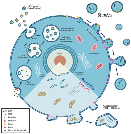 - Doyle, L.; Wang, M. Overview of Extracellular Vesicles, Their Origin, Composition, Purpose, and Methods for Exosome Isolation and Analysis. Cells 2019, 8, 727. [Google Scholar] [CrossRef] [Green Version]