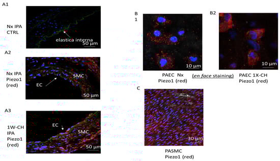 3.2. Piezo1 Channels Are Expressed in PAECs and PASMCs in an Early Stage of CH-PH