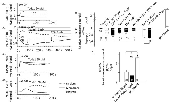 3.6. Transmembrane Potential and Piezo1 in PAECs and PASMCs