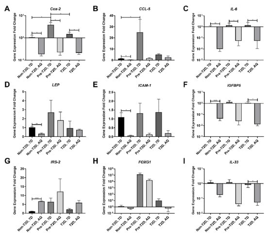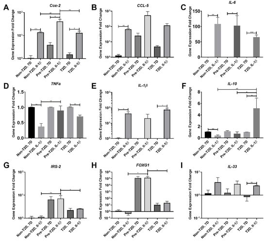 3.3. Increased COX-2, IL-6 and FOXG1 Gene Expression in IL-1β Stimulated Pre-T2D IPFP-ASCs