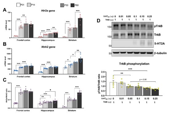 3.5. Expression Patterns of TrkB and 5-HT2A during Postnatal Development